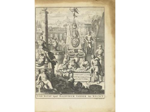 1695. LIBRO. (NUMISMÁTICA). SELECTIORUM NUMISMATUM, PRAECIPVE ROMANORUM EXPOSITIONES. Lugduni Batavaorum: Balduinus Van der Aa, 1695. 4º. Frontis grabado + portada a dos tintas y con grabado calcográfico + 6 h.+ 164 p. + 4 h. y 45 lám. grabadas. Primeras hojas algo tostadas. Enc. reciente en plena piel, nervios, hierros secos en la lomera. Las láminas calcográficas reproducen medallas y monedas romanas.