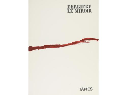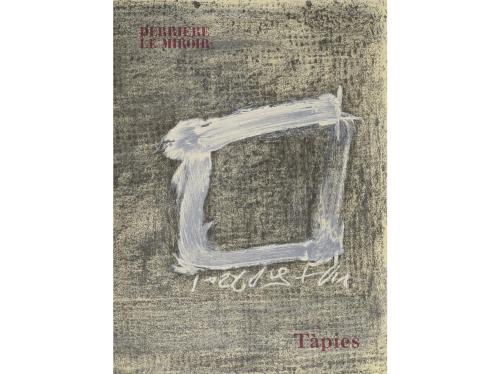 1979. LIBRO. (ARTE-BIBLIOFILIA). TÀPIES. DERRIÈRE LE MIROIR. Dedicatoria de Julio Cortázar. Paris: Ed. Maeght, 1979. Folio. 24 p. Ilustrada con 22 reproducciones a toda página en color y b/n de la obra de Tàpies. Cubiertas y litografía a doble página, son originales de Tàpies. Ejemplar en rama. Rústica. Presentado en una petaca de cartoné. Edición numerada de 150 ejemplares firmados por el artista.