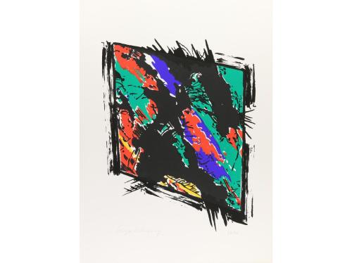 1981. LIBRO. (BIBLIOFILIA). VILLANGÓMEZ LLOBET, MARIÀ; VILLANGÓMEZ, SONYA:. EL COLOR DE LES PARAULES. Eivissa/Barcelona: Serigrafía Maura, 1981. Foliol. Contiene 15 poemas de Marià Villangómez y 15 serigrafías de Sonya Villangómez. En rama, presentado en funda y caja de madera con el título impreso. Edición numerada de 90 ejemplares.