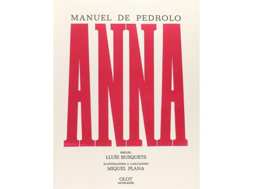 1982. LIBRO. (BIBLIOFILIA). PEDROLO, MANUEL DE:. ANNA. Prólogo de Lluis Busquets. Olot: Ed. Miquel Plana, 1982. Gran folio. 50 p. aprox. 1 aguafuerte numerado y firmado por el escritor más 15 aguafuertes de MIQUEL PLANA, también firmados y numerados. Ejemplar en rama presentado con cubiertas de arpillera. Edición numerada de 75 ejemplares.