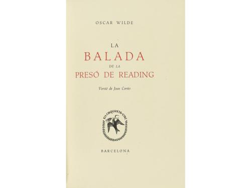 1950. LIBRO. (BIBLIOFILIA). WILDE, OSCAR:. LA BALADA DE LA PRESÓ DE READING. Trad. Joan Cortés. Barcelona: Tall. Salvador Cots, 1950. 4º menor. 91 p. + 2 h. Enc. por BRUGALLA en plena piel, hilos, cantos y cejas dorados, nervios, corte superior dorado. Edición numerada de 60 ejemplares.