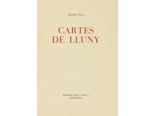 1946. LIBRO. (BIBLIOFILIA). PLA, JOSEP:. CARTES DE LLUNY. Barcelona: Edicions Aigua Blava, 1946. 4º. 285 p. En rama e intonso. Edición numerada y firmada por el autor de 150 ejemplares. Rústica, en petaca de cartoné.
