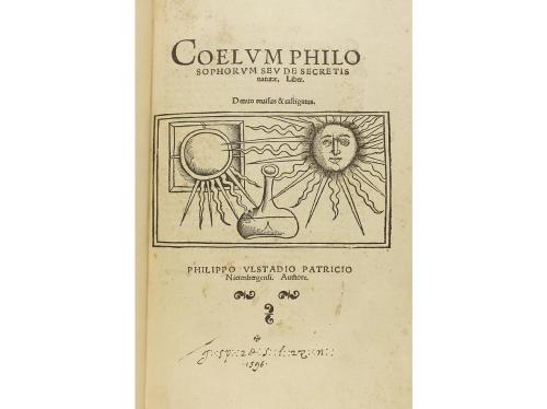 2002. LIBRO. (FACSÍMIL). COELUM PHILOSOPHORUM SEU DE SECRETIS NATURAE. Madrid: Círculo Científico, S.R.L., 2002. 4º mayor. 57 h. de facsímil del ejemplar editado en Estrasburgo en 1525, actualmente es de la Universidad Complutense y se encuentra depositado en la Biblioteca Histórica Marqués de Valdecilla. Enc. en plena piel con hierros secos, Nervios, tejuelo y lomo cuajado. Edición numerada limitada a 999 ejemplares con acta notarial. Se acompaña de un volumen de comentarios encuadernado en media piel. Los dos volúmenes vienen presentados en un estuche también en media piel.
