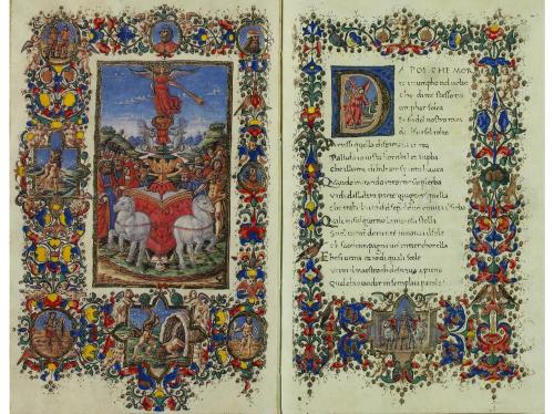 2001. LIBRO. (FACSÍMIL). BEATO DE LIEBANA. BEATO MORGAN (BEATUS MS 644 PROPIEDAD DE THE PIERPONT MORGAN LIBRARY). Valencia: Scriptorium, s.a. 2 vol. en folio mayor. Aprox. 100-150 h. imitación pergamino en cada volumen, con ilustraciones. Enc. en pergamino con cierres de badana, presentado cada uno en un estuche de piel vuelta, levemente rozada. Edición numerada limitada a 490 ejemplares, con acta notarial. Se acompaña del libro de comentarios del facsímil de San Miguel de Escalada.