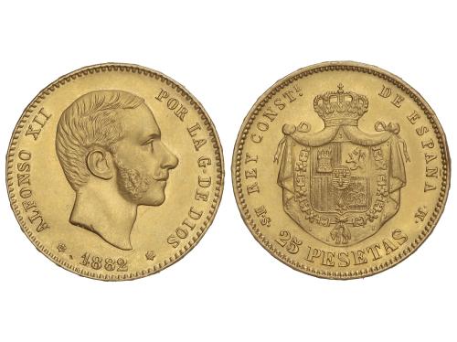 ALFONSO XII. 25 Pesetas. 1882/1 (*18-82). M.S.-M. 8,05 grs. AU (900). AC-84. EBC.