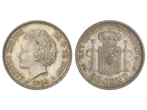 ALFONSO XIII. 50 Céntimos. 1894 (*9-4). P.G.-V. Pátina y brillo originales. AC-43. SC.