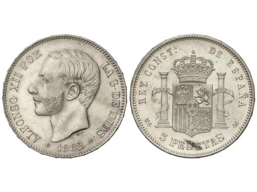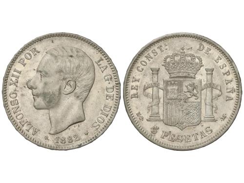 ALFONSO XII. 5 Pesetas. 1882 (*18-82). M.S.-M. (Pequeñas rayitas en anverso). AC-51. EBC-/EBC.