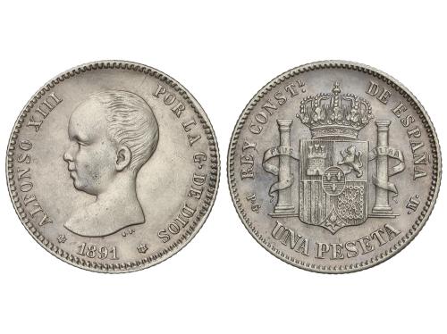 ALFONSO XIII. 1 Peseta. 1891 (*18-91). P.G.-M. AC-53. MBC+/EBC-.