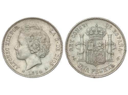 ALFONSO XIII. 1 Peseta. 1894 (*18-94). P.G.-V. AC-55. MBC+.