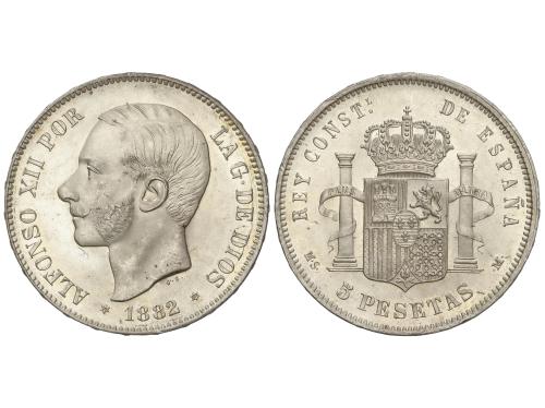ALFONSO XII. 5 Pesetas. 1882 (*18-82). M.S.-M. Bello ejemplar. ( (Levísimos golpecitos en gráfila). Pleno brillo original. RARA ASÍ. AC-51. SC-. Ex Soler y Llach y Martí Hervera 1094 - 20 diciembre 2016, n. 611.