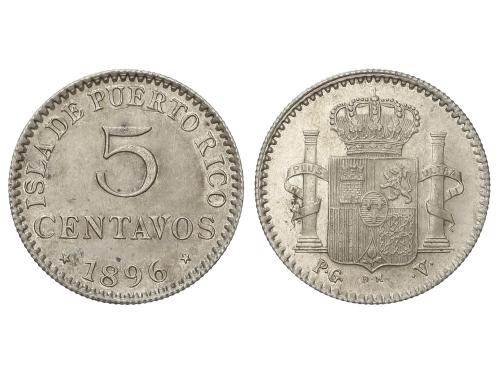 ALFONSO XIII. 5 Centavos de Peso. 1896. PUERTO RICO. P.G.-V. AC-124. EBC. Ex Soler y Llach y Martí Hervera 1050 - 10 abril 2008, n. 1391.