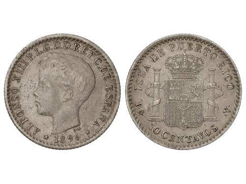 ALFONSO XIII. 10 Centavos de Peso. 1896. PUERTO RICO. P.G.-V. Pátina. AC-125. EBC-.
