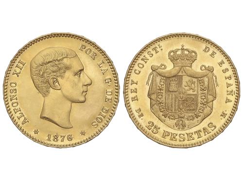 ALFONSO XII. 25 Pesetas. 1876 (*18-76). D.E.-M. 8,05 grs. AU (900). Brillo original. AC-67. EBC+.