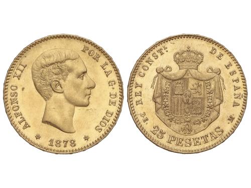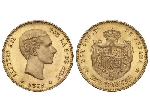 ALFONSO XII. 25 Pesetas. 1878 (*18-78). D.E.-M. 8,06 grs. AU (900). Brillo original. AC-70. EBC.
