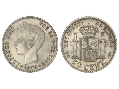 ALFONSO XIII. 50 Céntimos. 1896 (*9-6). P.G.-V. ESCASA. AC-44. EBC.
