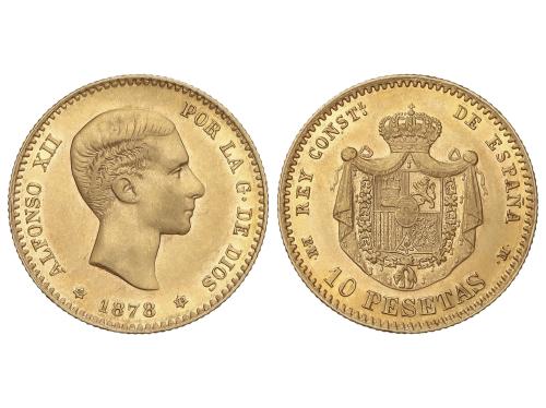 ALFONSO XII. 10 Pesetas. 1878 (*18-78). E.M.-M. 3,21 grs. AU (900). Restos de brillo. AC-65. EBC-.