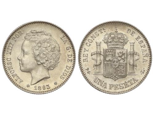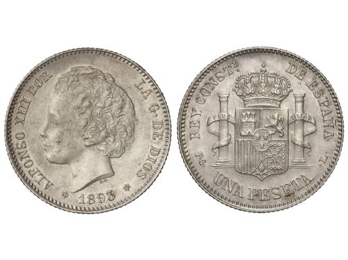 ALFONSO XIII. 1 Peseta. 1893 (*18-93). P.G.-L. Brillo original. BONITA PIEZA. AC-54. EBC+.
