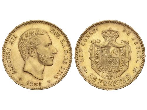 ALFONSO XII. 25 Pesetas. 1881 (*18-81). M.S.-M. 8,04 grs. AU (900). Pequeños restos de brillo. AC-82. EBC+.