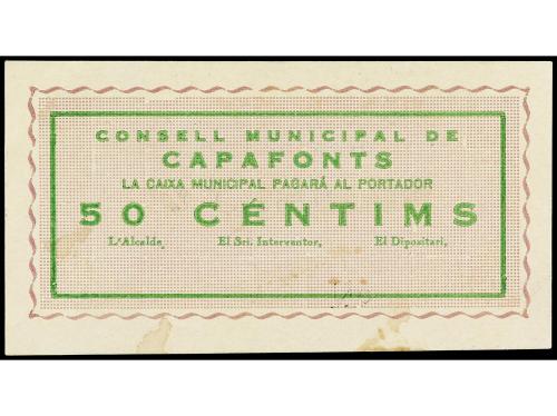 CATALUNYA. 50 Céntims. Aj. de L´ ESPLUGA CALVA. Numeración baja: 0021. MUY RARO. AT-948; T-1085. EBC.