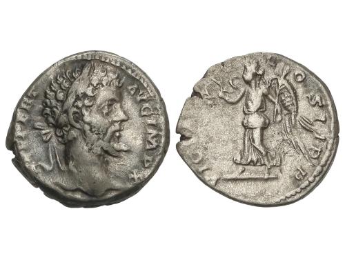 IMPERIO ROMANO. Denario. 197-198 d.C. SEPTIMIO SEVERO. Anv.: L. SEPT. SEV. PERT. AVG. IMP. X. Cabeza laureada a derecha. Rev.: VICT. AVGG. COS. II P. P. Victoria a izquierda. 3,19 grs. AR. (Oxidaciones). C-694; RIC-120. MBC.