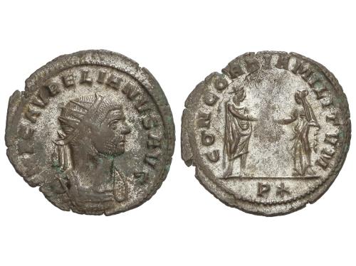 IMPERIO ROMANO. Antoniniano. 270-275 d.C. AURELIANO. Rev.: CONCORDIA MILITVM. Aureliano y concordia, estantes dandose la mano. 2,75 grs. AE. Restos de plateado. C-60; RIC-59. MBC+/EBC-.