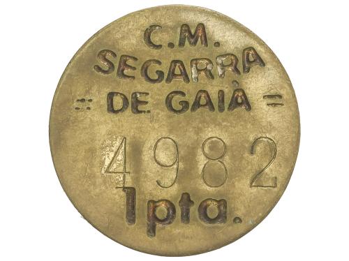 EMISIONES LOCALES GUERRA CIVIL. 1 Pesseta. C.M. SEGARRA DE GAIÀ. AC-36; HG-229, Vti-L43. EBC-.