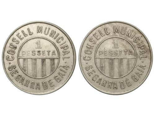 EMISIONES LOCALES GUERRA CIVIL. Lote 2 monedas 1 Pesseta. C.M. SEGARRA DE GAIÀ. AC-37; AT-2308; Vti-L43. EBC.
