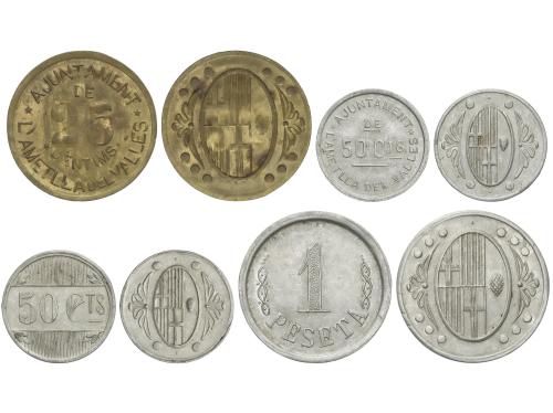 EMISIONES LOCALES GUERRA CIVIL. Lote 4 monedas 25, 50 Cèntims y 1 Pesseta. Aj. De L´AMETLLA DEL VALLÈS. A EXAMINAR. AC-1/4; RGH-6259/6262; Vti-L13/15, L17. EBC- a EBC.