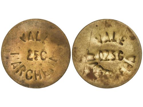 EMISIONES LOCALES GUERRA CIVIL. Lote 2 monedas 25 Céntimos (25 y 025C). MARCHENA. Serie completa. ESCASA Y MUY RARA. AC-45/46. MBC+ y MBC.