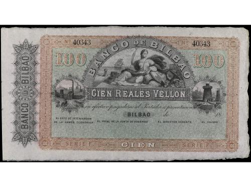ANTIGUOS. 100 Reales de Vellón. 21 Agosto 1857. BANCO DE BILBAO. Serie F. Ed-143. SC-.