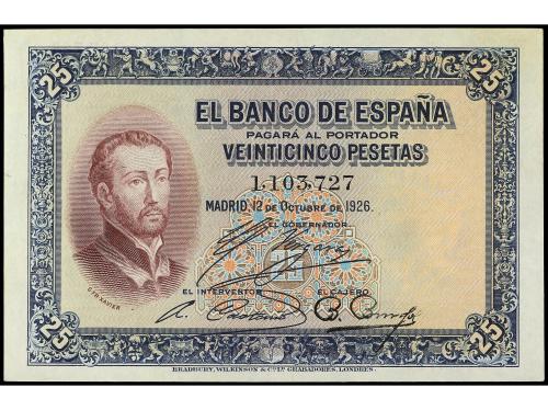BANCO DE ESPAÑA. 25 Pesetas. 12 Octubre 1926. San Francisco Javier. Sin serie. Ed-325. EBC.