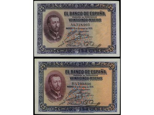 BANCO DE ESPAÑA. Lote 2 billetes 25 Pesetas. 12 Octubre 1926. San Francisco Javier. Serie A y B. Ed-325a. EBC.