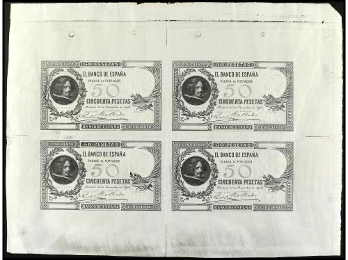 ANTIGUOS. Lote 4 Pruebas anverso 50 Pesetas. 30 Noviembre 1902. Velázquez. En bloque de cuatro sin cortar. Ed-309Pa. EBC-.
