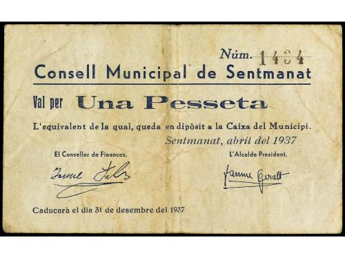 CATALUNYA. 1 Pesseta. Abril 1937. Aj. de SENTMANAT. (Algo sucio). T-2340. MBC.