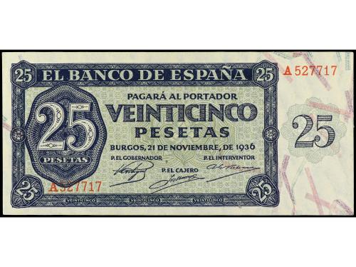 ESTADO ESPAÑOL. 25 Pesetas. 21 noviembre 1936. Serie A. (Leves arruguitas en esquinas, tira de seguridad en margen derecho algo suelta). ESCASO ASÍ. Ed-419. SC-.