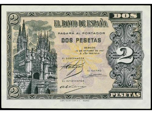 ESTADO ESPAÑOL. 2 Pesetas. 12 Octubre 1937. Catedral de Burgos. Serie A. (Leves arruguitas). Ed-426. SC-.