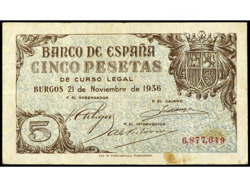 ESTADO ESPAÑOL. 5 Pesetas. 21 Noviembre 1936. (Manchitas, pequeños agujeritos). Ed-417. MBC-.
