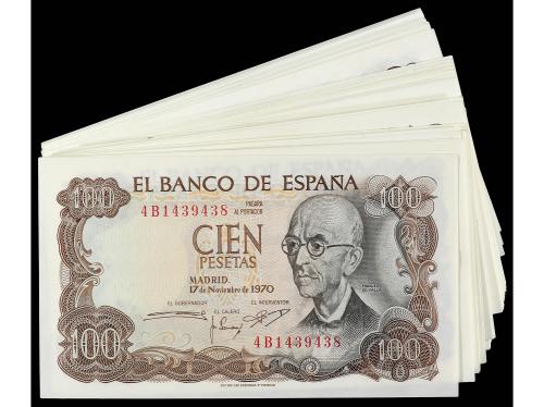 ESTADO ESPAÑOL. Lote 100 billetes 100 Pesetas. 17 Noviembre 1970. Falla. Diferentes series. A EXAMINAR. Ed-472b. MBC+ a SC.