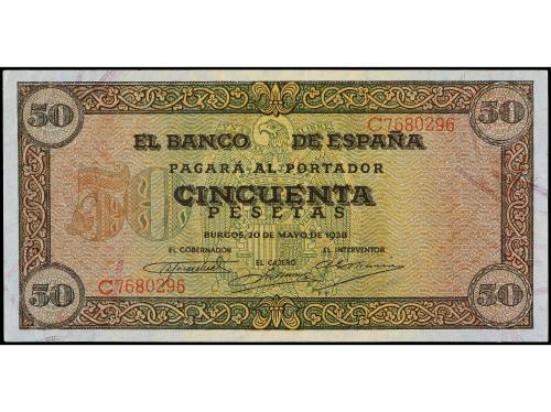 ESTADO ESPAÑOL. 50 Pesetas. 20 Mayo 1938. Castillo de Olite. Serie C. (Arruguitas). Ed-431a. EBC+.
