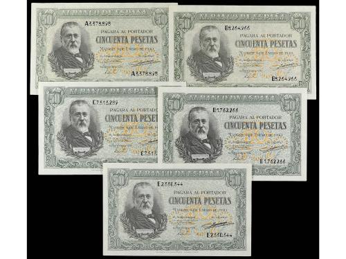 ESTADO ESPAÑOL. Lote 5 billetes 50 Pesetas. 9 Enero 1940. Menéndez Pelayo. Series A, B, C, D, E. A EXAMINAR. Ed-437, 437a. EBC- a EBC.