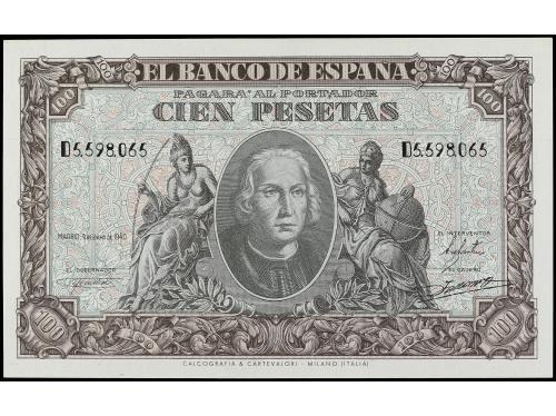 ESTADO ESPAÑOL. 100 Pesetas. 9 Enero 1940. Colón. Serie D. (Leveisima arruguita). Ed-438a. SC-.
