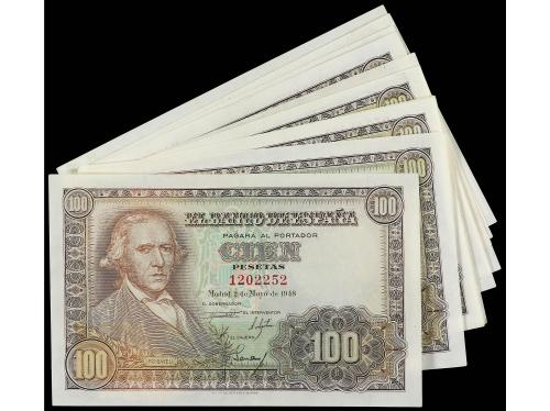 ESTADO ESPAÑOL. Lote 10 billetes 100 Pesetas. 2 Mayo 1948. Séneca. Sin Serie, Series A, B, C, D, E, F, G, H, I. A EXAMINAR. Ed-456, 456a, 456b. EBC a SC-.