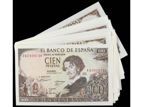 ESTADO ESPAÑOL. Lote 26 billetes 100 Pesetas. 19 Noviembre 1965. Bécquer. Sin Serie y Serie A, B, C, D, E, F, G, H, I, J, K, L, M, N, P, Q, R, S, T, U, V, W, X, Y, Z. A EXAMINAR. Ed-470, 470a. EBC- a SC.