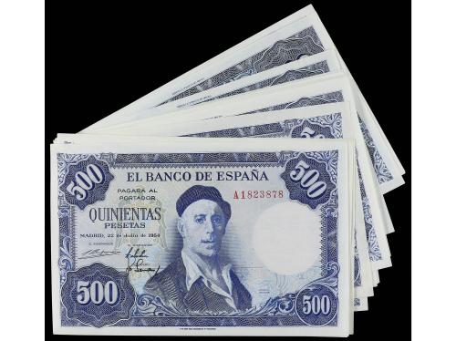 ESTADO ESPAÑOL. Lote 18 billetes 500 Pesetas. 22 Julio 1954. Zuloaga. Serie A, B, C, D, F, I, J, K, L, M, N, P, Q, R, S, T, U, V. A EXAMINAR. Ed-468a, 468b, 468c. EBC- a SC.