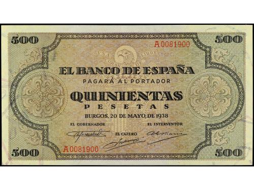 ESTADO ESPAÑOL. 500 Pesetas. 20 Mayo 1938. Catedral de Santiago. (Leves roturas). Ed-433. MBC.