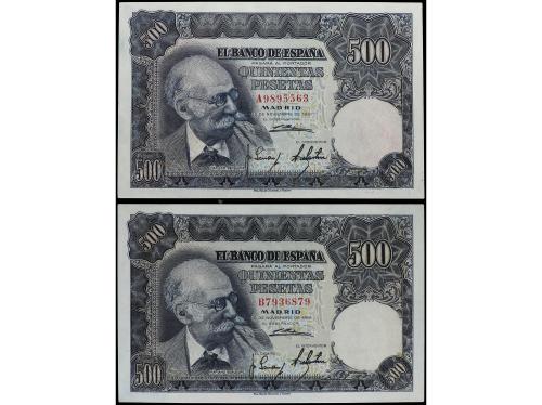 ESTADO ESPAÑOL. Lote 2 billetes 500 Pesetas. 23 Julio 1971. Verdaguer. Serie 1R y numeración especial 9A. Ed-473aa, 473b. EBC y SC-.
