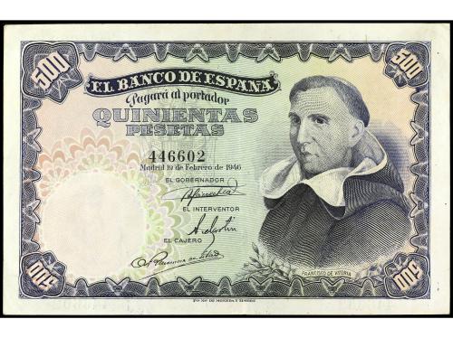 ESTADO ESPAÑOL. 500 Pesetas. 19 Febrero 1946. Francisco de Vitoria. Ed-452. MBC+.