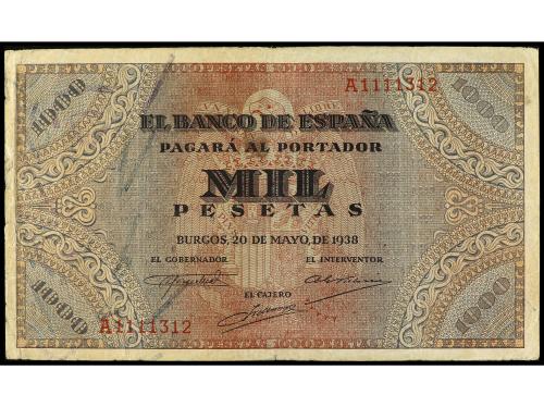 ESTADO ESPAÑOL. 1.000 Pesetas. 20 Mayo 1938. Defensa del Púlpito de San Agustín. (Roturas). Ed-434. MBC.