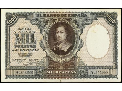 ESTADO ESPAÑOL. 1.000 Pesetas. 9 Enero 1940. Murillo. (Planchado). Ed-440. EBC.