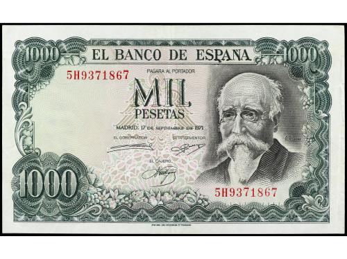ESTADO ESPAÑOL. 1.000 Pesetas. 17 Septiembre 1971. Echegaray. Serie 5H. ERROR de IMPRESIÓN EN REVERSO. Parte de anverso impreso en reverso. Ed-474c. MBC+.